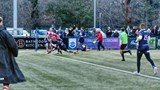 Dorking/Old Cats were in control of the game and gaining more ground when unfortunately, our star no. 8 Lynne went down with a serious hip injury.  Trapped beneath her was the Dorking physio Lauren, who took charge as soon as she managed to extract herself, and rapidly assessed the situation.  The Ref directed us to move pitches as he assumed it was going to be a stretcher and ambulance job, but Lynne is an unbelievably tough cookie and once Lauren had given the all-clear she was carried off the pitch by her husband and relocated to a bench so she could watch the rest of the game!