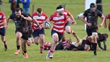 Dartfordians made repeated efforts to reach the try line, but the Dorking/Old Cats defence was robust and we pushed them back to the half way line.  Dartfordians promptly changed tack, kicked the ball behind the defensive line, chased it down to secure a turnover and scored in the corner via a driving mall. Their conversion was good.