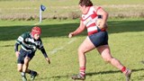 The Corks kicked off into the wind to restart, with Spencer chasing it down to drop on the ball and secure it, but the ref decided it hadn’t quite made the 10 m line. Dartfordians took the scrum and came at us again, but the forwards in particular put in a cracking defensive performance and we drove them into touch. Unfortunately, the wind prevented Tamzin’s throw at the line out from reaching the 5 m mark and Dartfordians took another scrum. They failed to make significant progress however and some infringements around the ruck led to aDorking/Old Cats penalty. Becky stepped forward and punted the ball down the pitch and while the wind prevented it from going into touch, Dartfordians knocked it on.