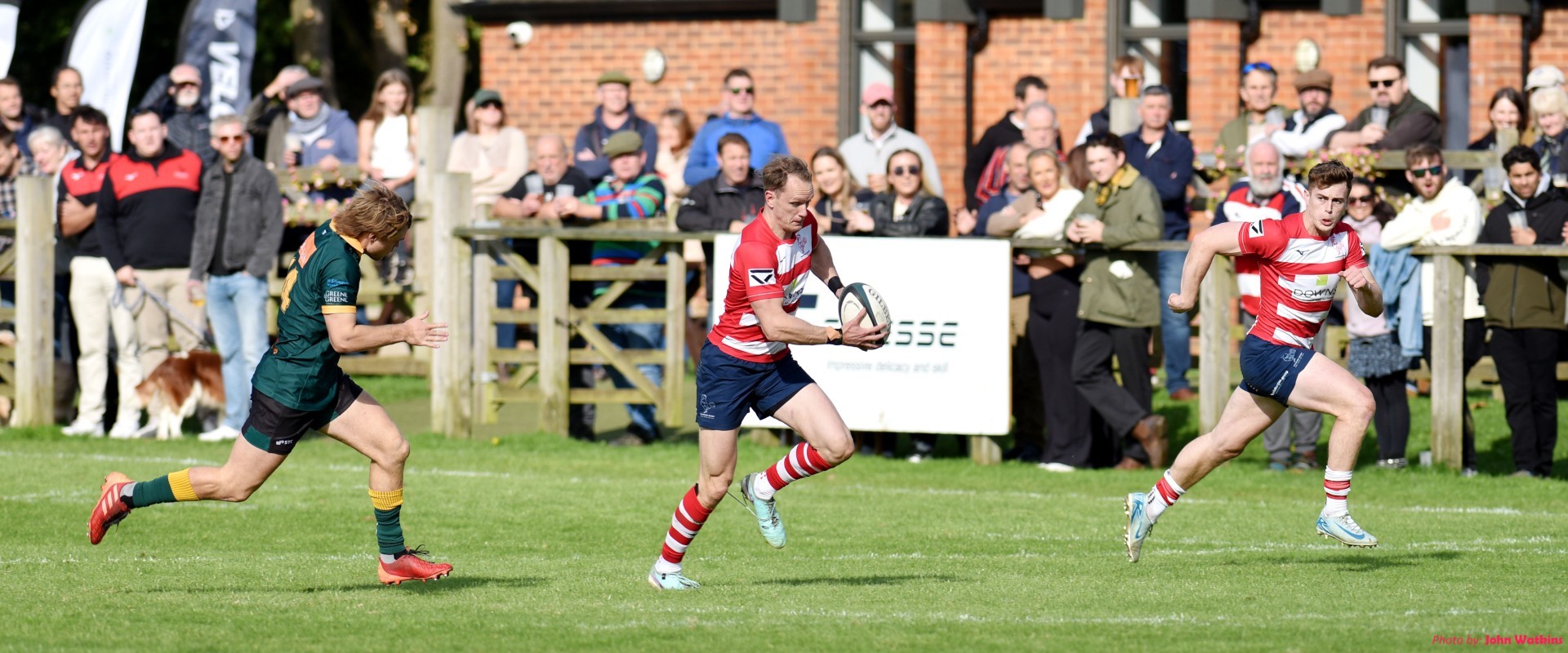 Bury St Edmunds came down to The Big Field with a much changed side from recent years having had some 20 new signings to the squad and 18 or so players retire or leave. This, coupled with several new faces in the Dorking line up made it a difficult match to call over the pre lunch drinks, and it would be fair to say that both clubs were a little apprehensive ahead of the kick off. As it turned out Dorking outscored Bury St Edmunds by 6 tries to 3 with wing Toby McRae sealing the victory and his hat trick with a solo intercept try on the eightieth minute in what was a pulsating encounter between these two old rivals. This is not to say that it was an easy match for the Red & Whites, far from it as Bury brought their customary robustness in open play, although it was the Dorking forwards through the front row of Birch, Ellis and Bristow who had the edge in the set piece. Special mention too to Toby McRae and Jasper King, both of whom were celebrating their 50th National League appearances.